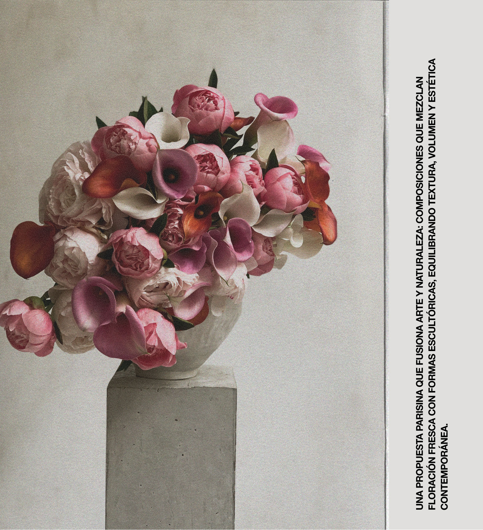 Floristería y taller creativo que reinventa el ramo clásico con estructuras que exploran volumen, textura y color, viendo cada pieza como pequeña escultura botánica.