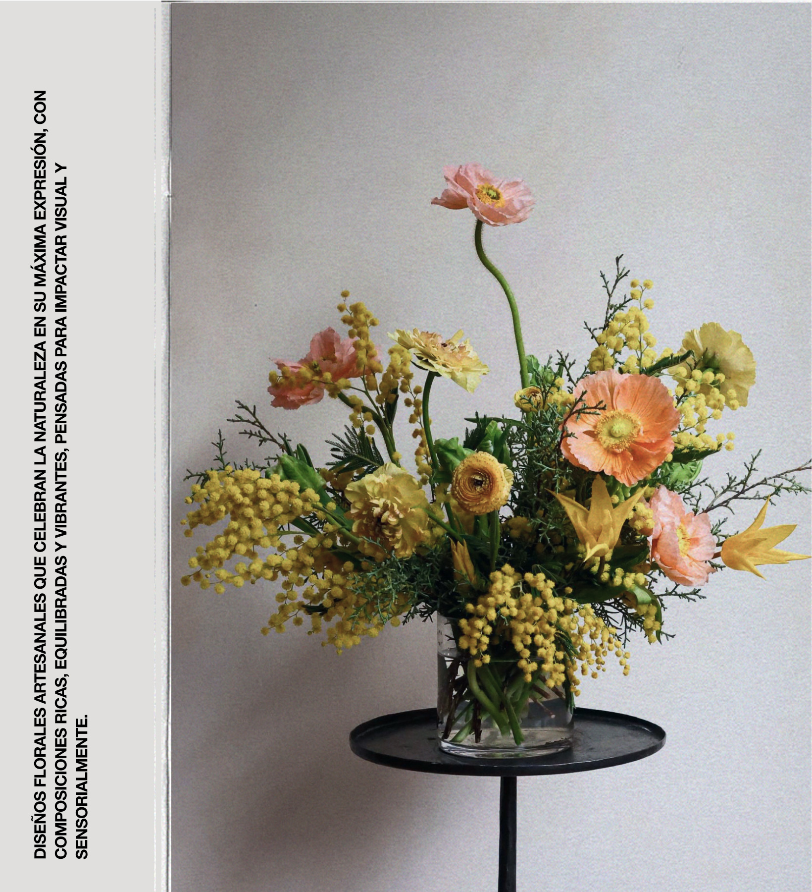 Estudio floral que combina sensibilidad natural y estilo contemporáneo, creando arreglos con presencia escultórica y un lenguaje visual propio y refinado para espacios y eventos.