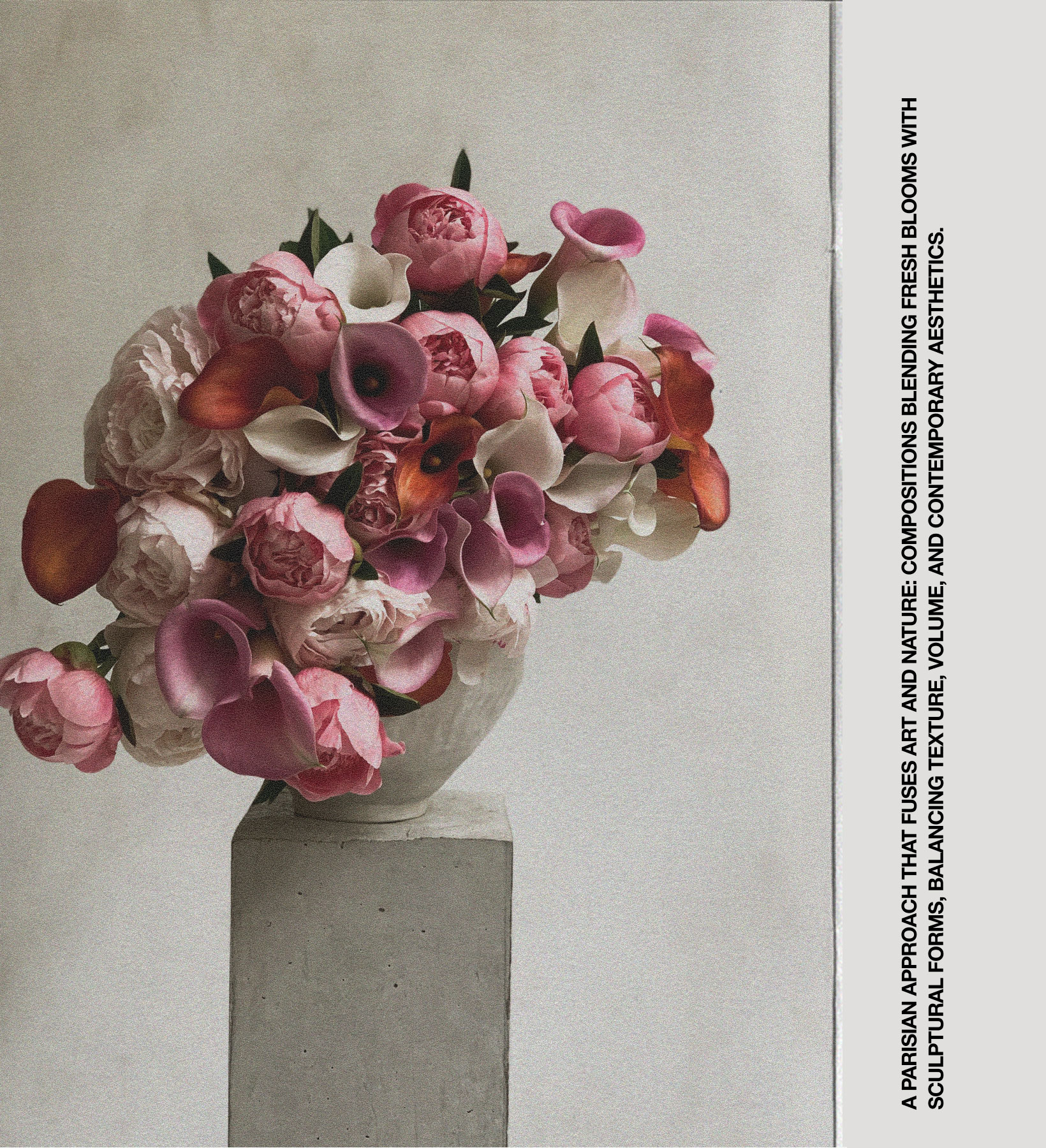 A floral studio combining natural sensitivity and contemporary style, creating arrangements with sculptural presence and a unique, refined visual language for spaces and events.