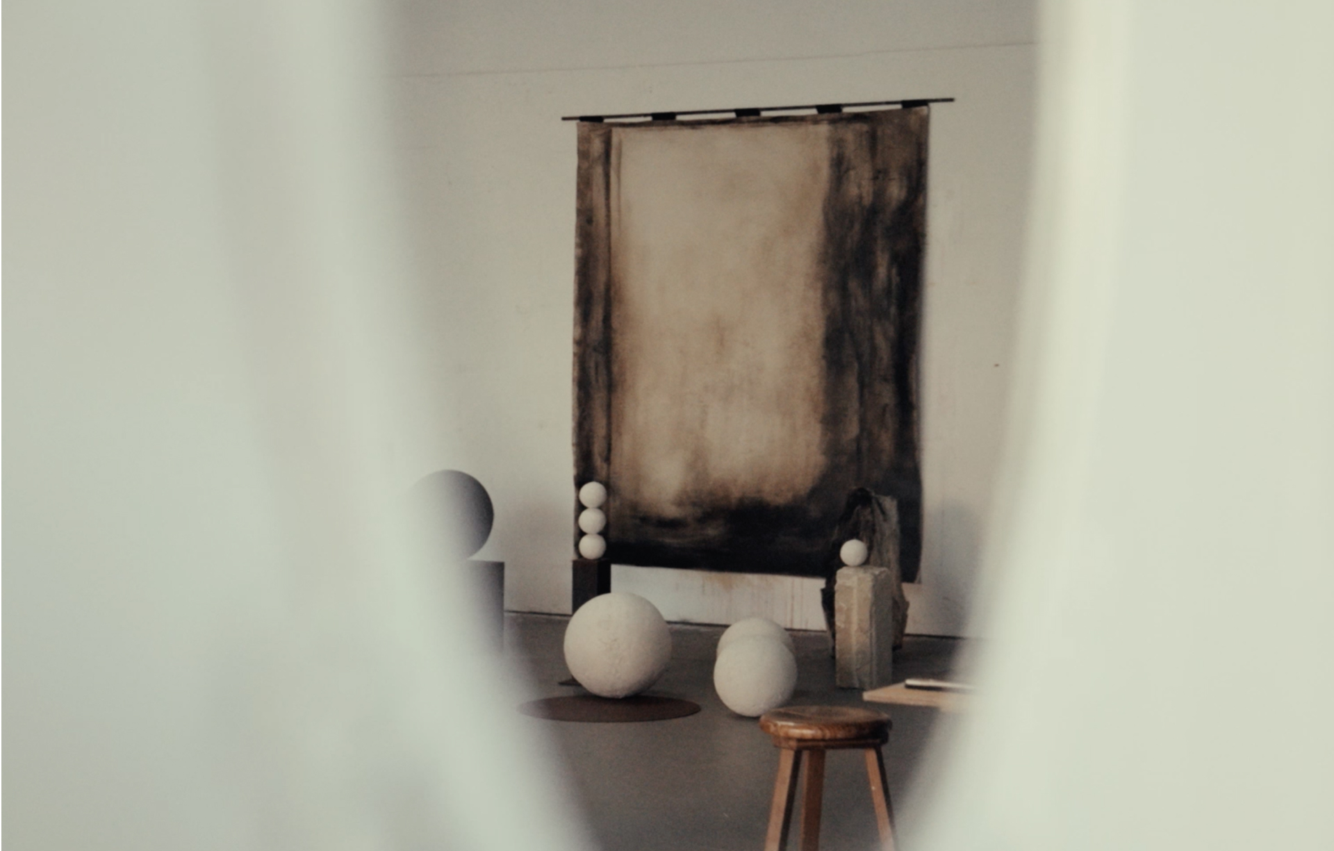 Every gesture in her studio is intentional, almost ritualistic: she closes her eyes, lets her body guide her hands—as if directed by an inner architecture of movement.