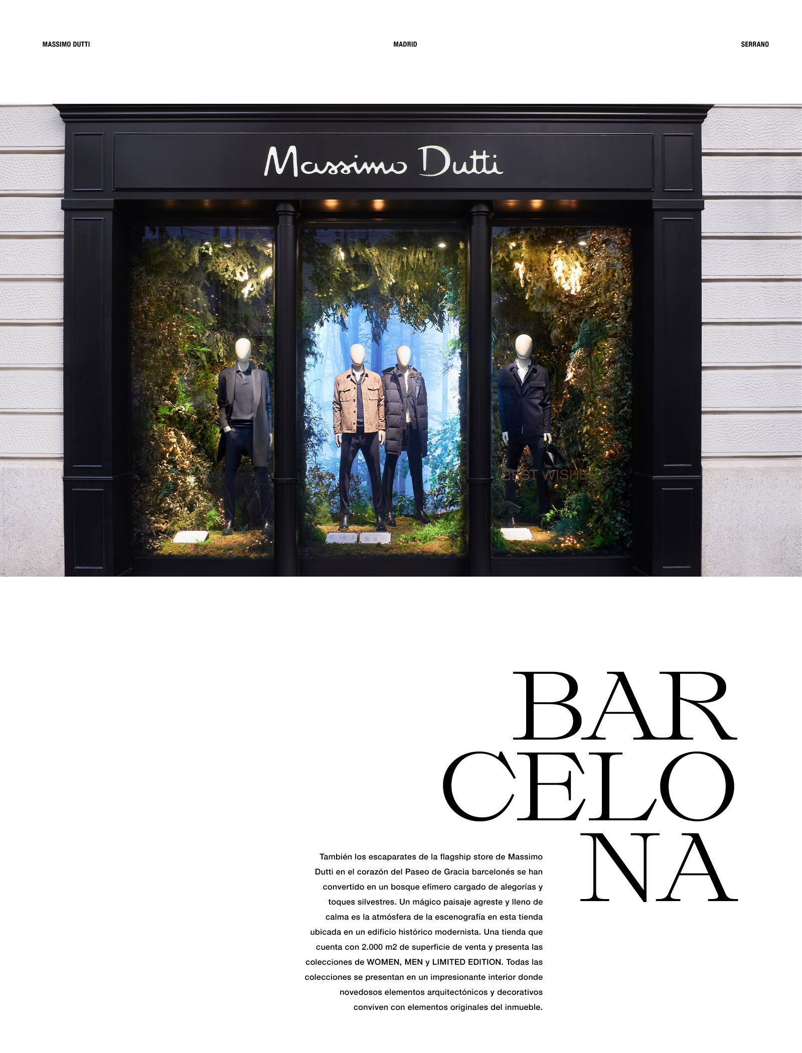 Diciembre es un mes de decoraciones efímeras. Y este año, Massimo Dutti ha celebrado el mes más festivo del calendario con una exclusiva intervención botánica para engalanar dos de sus fachadas más emblemáticas.